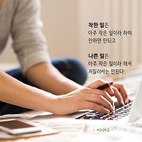 전체 글3527 사람들은 대개 시간의 소중함을 자신의 시간이 거의 남지 않았을 때야 비로소 깨우칩니다. 사람들은 대개 시간의 소중함을 자신의 시간이거의 남지 않았을 때야비로소 깨우칩니다. - 생각을 뒤집으면 인생이 즐겁다 명언 - 좋은글귀 2018. 8. 6. 더보기 ›› 불행은 남이 만들어놓은 길을 걸어가는 것이고, 행복은 자신만의 길을 만들어 가는 것입니다. 불행은 남이 만들어놓은 길을걸어가는 것이고, 행복은 자신만의 길을만들어 가는 것입니다. - 생각을 뒤집으면 인생이 즐겁다 명언 - 좋은글귀 2018. 8. 5. 더보기 ›› 자신의 나쁜 습관을 고치는 것의 시작은 자기의 습관을 자기 스스로가 바라보는 것으로부터 시작해야 합니다. 자신의 나쁜 습관을고치는 것의 시작은 자기의 습관을 자기 스스로가바라보는 것으로부터 시작해야 합니다. "내가 이런 습관이 있구나." "또 이런 습관이 나오네." 그렇게 바라보는 횟수가 많아지면습관적 행동 이전에 알아채고다른 행동을 취할 수가 있습니다. 물론 수십년간 지속되어 온 습관이하루아침에 바뀌기를기대하는 건 욕심이겠죠. - 생각을 뒤집으면 인생이 즐겁다 명언 - 좋은글귀 2018. 8. 3. 더보기 ›› 5% 성장은 불가능해도 30% 성장은 가능하다. 5% 성장을 목표로 삼으면 과거 방식대로, 움직이기 때문에 4% 성장도 달성하기 힘들다. 5% 성장은 불가능해도30% 성장은 가능하다.5% 성장을 목표로 삼으면 과거 방식대로,움직이기 때문에 4% 성장도 달성하기 힘들다. 그러나 30% 성장을 목표로 삼으면혁신적인 아이디어를 찾게 되고접근방식도 달라지기 때문에기대이상의 성과를 거두곤 한다. - 마쓰시타 고노스케 꿈ㆍ비전 - 명언 2018. 8. 2. 더보기 ›› 누구나 편안하다고 느끼는 순간 두뇌는 활동을 멈추게 된다. 창의성을 폭발적으로 끌어올리고 진정 성공하기를 원한다면 자신의 따뜻한 보금자리를 떠나야만 한다. 누구나 편안하다고 느끼는 순간 두뇌는 활동을 멈추게 된다. 어떤 사람이 창의성을 폭발적으로 끌어올리고 진정 성공하기를 원한다면 자신의 따뜻한 보금자리를 떠나야만 한다. 한 곳에 머무르지 말고 항상 정신적, 육체적으로 방랑하라. 편안함을 느끼며 안주해서는 안 된다. - 에란 카츠, ‘천재가 된 제롬’에서 실천ㆍ습관 - 명언 2018. 8. 1. 더보기 ›› 여행은 서서하는 독서이고, 독서는 앉아서 하는 여행이다. 여행은 서서하는 독서이고,독서는 앉아서 하는 여행이다. - 그럼에도 여행 책 - 좋은글 2018. 8. 1. 더보기 ›› 세상에서 제일 행복한 사람은 아침에 눈뜰 때 오늘 할일에 대한 설렘이 있는 사람입니다. 세상에서 제일 행복한 사람은아침에 눈뜰 때오늘 할일에 대한설렘이 있는 사람입니다. - 생각을 뒤집으면 인생이 즐겁다 명언 - 좋은글귀 2018. 8. 1. 더보기 ›› 비교는 물건 가격이나 비교하는 것이지 인간을 비교하는 것은 아닙니다. 비교는 물건 가격이나 비교하는 것이지인간을 비교하는 것은 아닙니다. - 생각을 뒤집으면 인생이 즐겁다 명언 - 좋은글귀 2018. 7. 31. 더보기 ›› 성공한 사람이 될 수 있는데 왜 평범한 이에 머무르려 하는가? 성공한 사람이 될 수 있는데왜 평범한 이에 머무르려 하는가? - 베르톨트 브레히트 명언 - 좋은글귀 2018. 7. 28. 더보기 ›› 착한 일은 아주 작은 일이라 하여 안하면 안되고, 나쁜 일은 아주 작은 일이라 해서 저질러서는 안된다. 착한 일은아주 작은 일이라 하여안하면 안되고, 나쁜 일은아주 작은 일이라 해서저질러서는 안된다. - 명심보감 명언 - 좋은글귀 2018. 7. 24. 더보기 ›› 남에게 도움을 주었는데 감사를 못 받았다고 섭섭하게 생각하지 마세요. 스스로 기쁨을 느꼈다면 많은 것을 얻은 것입니다. 남에게 도움을 주었는데감사를 못 받았다고섭섭하게 생각하지 마세요. 스스로 기쁨을 느꼈다면많은 것을 얻은 것입니다. - 생각을 뒤집으면 인생이 즐겁다 명언 - 좋은글귀 2018. 7. 23. 더보기 ›› 우물 안의 개구리는 자신이 경험한 우물이 자신의 생각의 한계입니다. 책을 읽는다는 건 우물 밖 세상에 대해서 경험하고 자신의 생각을 그만큼 넓힌다는 것입니다. 우물 안의 개구리는자신이 경험한 우물이자신의 생각의 한계입니다. 책을 읽는다는 건우물 밖 세상에 대해서 경험하고자신의 생각을그만큼 넓힌다는 것입니다. - 생각을 뒤집으면 인생이 즐겁다 명언 - 좋은글귀 2018. 7. 23. 더보기 ›› 이전 1 ··· 23 24 25 26 27 28 29 ··· 294 다음