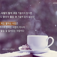전체 글3527 가장 가까운 사람들 사이에도 무수한 차이가 있다는 사실을 깨닫는다면 훨씬 더 황홀한 삶이 전개될 것이다. 상호간의 차이와 거리를 사랑할 수 있다면 상대방의 전부를 바라볼 수 있을 것이.. 가장 가까운 사람들 사이에도무수한 차이가 있다는 사실을 깨닫는다면훨씬 더 황홀한 삶이 전개될 것이다. 상호간의 차이와 거리를사랑할 수 있다면상대방의 전부를바라볼 수 있을 것이다. - 릴케 인간관계 - 명언 2017. 1. 20. 더보기 ›› 다른 사람의 말에 귀를 기울이지 않으면 상대도 당신의 말을 귀 기울여 듣지 않는다. 말을 제일 잘하는 사람은 논리적으로 말하는 사람이 아니라, 남의 말을 잘 들어주는 사람이다. 다른 사람의 말에귀를 기울이지 않으면상대도 당신의 말을귀 기울여 듣지 않는다. 말을 제일 잘하는 사람은논리적으로 말하는 사람이 아니라,남의 말을 잘 들어주는 사람이다. - 래리 킹(미국 방송인) 인간관계 - 명언 2017. 1. 19. 더보기 ›› 공을 들여 키워야 하는 화초보다 인간은 더 민감한 존재다. 화초를 대하듯 사람들을 대하라. 그러면 활짝 피어날 것이다 만족감 및 동기부여의 열쇠는기본 예의를 갖춰 사람들을 대하는데 있다. 공을 들여 키워야 하는 화초보다인간은 더 민감한 존재다. 화초를 대하듯 사람들을 대하라.그러면 활짝 피어날 것이다. - 조 앤더슨(경영인 위원회 TEC 회장) 동기부여 - 명언 2017. 1. 18. 더보기 ›› 불가능하다고 입증되기 전까지는 모든 것이 가능하다. 그리고 불가능한 것도 현재 불가능한 것일 뿐이다 불가능하다고 입증되기 전까지는모든 것이 가능하다.그리고 불가능한 것도현재 불가능한 것일 뿐이다 - 펄 벅 긍정 - 명언 2017. 1. 17. 더보기 ›› 나는 매일 스스로에게 두 가지 말을 반복한다. ‘웬지 오늘은 나에게 큰 행운이 생길 것 같다’, ‘나는 무엇이든 할 수 있다’ 내가 부자가 된 비결은 다음과 같다.나는 매일 스스로에게 두 가지 말을 반복한다. 그 하나는 ‘웬지 오늘은 나에게 큰 행운이 생길 것 같다’이고,또 다른 하나는 ‘나는 무엇이든 할 수 있다’라는 것이다. - 부자가 된 비결을 묻는 기자의 질문에 대한 빌 게이츠의 답#톡톡힐링 http://tth.kr/1619 긍정 - 명언 2017. 1. 16. 더보기 ›› 구약성서, 신약성서 모두 남에게 대접받고 싶은 대로 남들을 대하라고 가르친다. 이 가르침은 종교 또는 윤리적 행동에만 국한되는 것이 아니라 훌륭한 리더십과도 깊은 관계가 있다. 구약성서, 신약성서 모두남에게 대접받고 싶은 대로남들을 대하라고 가르친다. 이 가르침은종교 또는 윤리적 행동에만국한되는 것이 아니라훌륭한 리더십과도 깊은 관계가 있다. 왜냐고?사람들은 자신을 제대로대접하지 않는 리더를따르지 않기 때문이다. 이것이 ‘경영의 황금률(Golden Rule system of management)’이다. - 메리케이 애쉬(메리케이 애쉬 화장품 창업회장) 인간관계 - 명언 2017. 1. 15. 더보기 ›› 변명형 인간은 일을 수행하지 못한 이유를 찾지만 결과형 인간은 일을 해야 하는 이유를 찾는다. 반응하는 사람이 아니라 창조하는 사람이 되어라. 세상에는 두 종류의 사람이 존재한다.변명하는 사람과 결과를 얻는 사람이 바로 그것이다. 변명형 인간은 일을 수행하지 못한 이유를 찾지만결과형 인간은 일을 해야 하는 이유를 찾는다. 반응하는 사람이 아니라 창조하는 사람이 되어라. - 앨런 코헨 긍정 - 명언 2017. 1. 14. 더보기 ›› 우리가 어떤 일을 감히 하지 못하는 것은 그 일이 너무 어렵기 때문이 아니라 어렵다는 생각에 사로잡혀 그 일을 시도하지 않기 때문이다. 우리가 어떤 일을 감히 하지 못하는 것은 일이 너무 어렵기 때문이 아니라어렵다는 생각에 사로잡혀그 일을 시도하지 않기 때문이다. - 세네카 긍정 - 명언 2017. 1. 13. 더보기 ›› 여기 네 인생이 있다. 너는 되고 싶었던 너인가? 여기 네 인생이 있다. 너는 되고 싶었던 너인가? - 스위치풋 Switchfoot 명언 - 좋은글귀 2017. 1. 12. 더보기 ›› 현재의 모습 그대로 상대방을 대해주면 그 사람은 현 상태 그대로 남아있을 것이다. 하지만 상대방이 할 수 있는 잠재능력대로 그를 대해주면 그 사람은 결국 그것을 이뤄낼 것이다. 사람들이 그들의 가장 바람직한 모습이 될 수 있도록 도와라.그리고 그들이 이미 가장 바람직한 모습이 된 것처럼 대하라. 현재의 모습 그대로 상대방을 대해주면그 사람은 현 상태 그대로 남아있을 것이다.하지만 상대방이 할 수 있는 잠재능력대로 그를 대해주면그 사람은 결국 그것을 이뤄낼 것이다. - 괴테 동기부여 - 명언 2017. 1. 11. 더보기 ›› 어린 나무가 비료를 주지 않아도 말라죽지 않는 것처럼 우리도 격려 없이 살 수는 있다. 그러나 따뜻한 보살핌을 받지 않는 한 우리는 결코 자신의 잠재력을 완전히 발휘하지 못하며, 혼자 방.. 우리 모두는 격려를 필요로 한다.어린 나무가 비료를 주지 않아도말라죽지 않는 것처럼우리도 격려 없이 살 수는 있다. 그러나 따뜻한 보살핌을 받지 않는 한우리는 결코 자신의 잠재력을완전히 발휘하지 못하며,혼자 방치 된 나무처럼열매를 맺지도 못한다. - 플로렌스 리타우어 동기부여 - 명언 2017. 1. 11. 더보기 ›› 태도는 사소한 것이지만, 그것이 만드