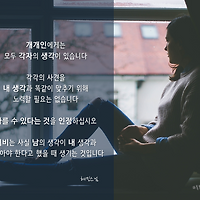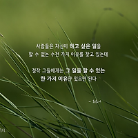전체 글3527 개개인에게는 모두 각자의 생각이 있습니다. 각각의 사견을 내 생각과 똑같이 맞추기 위해 노력할 필요는 없습니다. 다를 수 있다는 것을 인정하십시오. 개개인에게는모두 각자의 생각이 있습니다. 각각의 사견을내 생각과 똑같이 맞추기 위해노력할 필요는 없습니다. 다를 수 있다는 것을 인정하십시오. 시비는 사실,남의 생각이 내 생각과 똑같아야한다고 했을 때 생기는 것입니다. - 혜민스님 명언 - 좋은글귀 2016. 8. 24. 더보기 ›› 나의 일에 대한 비평을 나에 대한 비판으로 생각하시고 가슴 아퍼하지 마세요. 그사람이 나에 대해 알아봤자 얼마나 알겠습니까? 나의 일에 대한 비평을나에 대한 비판으로 생각하시고가슴 아퍼하지 마세요. 그사람이 나에 대해 알아봤자얼마나 알겠습니까? 정말로 다양한 모습을가지고 있는 나를몇마디 말로 규정되도록허락하지마세요. - 혜민스님 명언 - 좋은글귀 2016. 8. 23. 더보기 ›› 유리하다고 교만하지 말고, 불리하다고 비굴하지 말라. 무엇을 들었다고 쉽게 행동하지 말고, 그것이 사실인지 깊이 생각하여 이치가 명확할 때 과감히 행동하라. 우리가 가치 있는 삶을살았느냐, 아니냐 하는 것은 다른 사람에게얼마나 아름답고 보람찬 기억을남겼느냐에 달린 것이다. 유리하다고 교만하지 말고,불리하다고 비굴하지 말라.무엇을 들었다고 쉽게 행동하지 말고,그것이 사실인지 깊이 생각하여이치가 명확할 때 과감히 행동하라. - 잡보장경 책 - 좋은글 2016. 8. 21. 더보기 ›› 사람들은 자신이 하고 싶은 일을 할 수 없는 수천 가지 이유를 찾고 있는데, 정작 그들에게는 그 일을 할 수 있는 한 가지 이유만 있으면 된다. 사람들은 자신이 하고 싶은 일을할 수 없는 수천 가지 이유를찾고 있는데, 정작 그들에게는그 일을 할 수 있는한 가지 이유만 있으면 된다. - 휘트니 명언 - 좋은글귀 2016. 8. 21. 더보기 ›› 사람과의 인연은, 본인이 좋아서 노력하는데도 자꾸 힘들다고 느껴지면 인연이 아닌 경우일 수 있습니다. 사람과의 인연은,본인이 좋아서 노력하는데도자꾸 힘들다고 느껴지면인연이 아닌 경우일 수 있습니다. 될 인연은 그렇게 힘들게몸부림치지 않아도 이루어져요. 자신을 너무나 힘들게 하는인연이라면 그냥 놓아주세요. - 혜민스님 명언 - 좋은글귀 2016. 8. 19. 더보기 ›› 나는 행복할 가치가 있는 사람이야!라고 스스로 되뇌면 행복한 삶을 살아갈 가능성이 많아 집니다. 나는 행복할 가치가 있는 사람이야! 라고 스스로 되뇌면행복한 삶을 살아갈가능성이 많아 집니다. 왜냐하면 무엇이 나를행복하게 하는지 고민하게 되고,그것을 찾으려고 노력하기 때문입니다. - 생각을 뒤집으면 인생이 즐겁다 명언 - 좋은글귀 2016. 8. 18. 더보기 ›› 그를 설득하려고만 하니까 대화가 불통이지요. 대신 대화의 목표를 그를 이해하려고 한번 해 보세요. 대화가 되요. 그를 설득하려고만 하니까대화가 불통이지요. 대신 대화의 목표를그를 이해하려고 한번 해 보세요.대화가 되요. - 혜민스님 명언 - 좋은글귀 2016. 8. 17. 더보기 ›› 지금 하십시오! 원하는 것은 무엇이든 지금 하십시오! 미루어 놓은 내일 이라는 날들이 너무나 많습니다. 우리의 생이 시작되는바로 그 순간우리가 죽어가고 있다고말해줘야 합니다. 그래야 매일 매순간의 한계를 알고살아가게 될 것입니다.그렇습니다. 지금 하십시오!원하는 것은 무엇이든지금 하십시오! 미루어 놓은 내일 이라는 날들이너무나 많습니다. - 요한 바오로 6세 명언 - 좋은글귀 2016. 8. 16. 더보기 ›› 자신을 채찍질하며 수백, 수천 번 훈련했을 때, 신체의 여러 부분에서 발전이 일어날 것이다. 한 번의 훈련으로는아무것도 일어나지 않는다. 자신을 채찍질하며수백, 수천 번 훈련했을 때,신체의 여러 부분에서발전이 일어날 것이다. 비가 온다고?그건 문제가 안 된다.피곤하다고?그 또한 문제가 안 된다. 의지력이 있다면 아무 문제도 없다. - 에밀 자토펙 명언 - 좋은글귀 2016. 8. 15. 더보기 ›› 너희도 만일 피가 있고 뼈가 있다면 반드시 조선을 위해 용감한 투사가 되어라. (강보에 싸인 두 아들 모순과 담에게) 너희도 만일 피가 있고뼈가 있다면반드시 조선을 위해용감한 투사가 되어라. 태극의 깃발을 높이 드날리고나의 빈 무덤 앞에 찾아와한 잔의 술을 부어놓아라. 그리고 너희들은 아비 없음을슬퍼하지 말아라.사랑하는 어머니가 있으니어머니의 교양으로 성공자를동서양 역사상 보건데 동양으로 문학가 맹자가 있고서양으로 불란서 혁명가 나폴레옹이 있고미국에 발명가 에디슨이 있다. 바라건대 너희 어머니는그의 어머니가 되고너희들은 그 사람이 되어라. - 윤봉길 의사 유서 명언 - 좋은글귀 2016. 8. 15. 더보기 ›› 얼마나 많은 것을 포기하고 싶은지 스스로 인정하는 것. 이것이 바로 치유의 시작이다. 어떤 심리적 문제이든 치유의 첫 걸음은얼마나 많은 것을 포기하고 싶은지 스스로 인정하는 것.이것이 바로 치유의 시작이다. - 내가 사랑한 유럽 top10내가 사랑한 유럽 TOP 10국내도서저자 : 정여울출판 : 홍익출판사 2014.01.10상세보기 책 - 좋은글 2016. 8. 14. 더보기 ›› 공감만 하면 세상이 바뀐다고 이야기 하지만 오히려 악