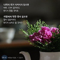 전체 글3527 나라의 의가 지켜지지 않으면 비록 그것이 클지라도 반드시 망할 것이요, 사람에게 착한 뜻이 없으면 힘이 있을지라도 반드시 상하고 말 것이다. 나라의 의가 지켜지지 않으면비록 그것이 클지라도반드시 망할 것이요, 사람에게 착한 뜻이 없으면힘이 있을지라도반드시 상하고 말 것이다. - 회남자 명언 - 좋은글귀 2016. 6. 25. 더보기 ›› 스스로를 감동시킬만큼 무슨 일에 최선을 다 해 본적이 있었던가? 다른 사람은 몰라도 본인은 안다. 정말로 최선을 다 했는지는... 그러면 눈물이 난다. 나도 모르게. 스스로를 감동시킬만큼무슨 일에 최선을다 해 본적이 있었던가? 다른 사람은 몰라도 본인은 안다.정말로 최선을 다 했는지는...그러면 눈물이 난다.나도 모르게. - 혜민스님 명언 - 좋은글귀 2016. 6. 23. 더보기 ›› 아무도 가지 않은 길을 걸어가려면 좀 무섭고 용기가 필요해요. 하지만 한발자국 한발자국 앞으로 걷다보면 앞의 길이 보이기 시작합니다. 아무도 가지 않은 길을 걸어가려면좀 무섭고 용기가 필요해요. 하지만 한발자국 한발자국앞으로 걷다보면앞의 길이 보이기 시작합니다. 누구처럼 되려고 하지말고나만의 스타일로 한번 도전해 보세요. - 혜민스님 명언 - 좋은글귀 2016. 6. 23. 더보기 ›› 걱정, 근심 속에 살아온 세상을 즐겁고 편안한 마음으로 떠난다. 걱정, 근심 속에 살아온 세상을즐겁고 편안한 마음으로 떠난다. - 맹자 명언 - 좋은글귀 2016. 6. 21. 더보기 ›› 실천할 수 있는 시간이 그리 많이 남지 않았음을 깨닫게 될 것입니다 어느날 아침 문득 눈을 떴을 때당신은 꿈꾸던 것들을 실천할 수 있는 시간이그리 많이 남지 않았음을 깨닫게 될 것입니다.바로 지금 시작하세요 - 마법의 순간 마법의 순간국내도서저자 : 파울로 코엘료(Paulo Coelho) / 김미나역출판 : 자음과모음 2013.04.30상세보기 책 - 좋은글 2016. 6. 21. 더보기 ›› 자신이 할 수 있는 것은 열심히 해서 얻으려고 노력하고, 자신이 할 수 없는 것은 할 수 없다고 인정하는 것이 지혜로움입니다. 자신이 할 수 있는 것은열심히 해서 얻으려고 노력하고, 자신이 할 수 없는 것은할 수 없다고 인정하는 것이지혜로움입니다. - 생각을 뒤집으면 인생이 즐겁다 명언 - 좋은글귀 2016. 6. 19. 더보기 ›› 가장 큰 실수는 포기해버리는것. 가장 어리석은 일은 남의 결점만 찾아내는것. 가장 심각한 파산은 의욕을 상실한 텅빈 영혼. 가장 나쁜감정은 질투. 가장 좋은선물은 용서 가장 큰 실수는포기해버리는 것. 가장 어리석은 일은남의 결점만 찾아내는 것. 가장 심각한 파산은의욕을 상실한 텅 빈 영혼. 가장 나쁜 감정은 질투. 그리고 가장 좋은 선물은 용서. - 프랭크 크레인 명언 - 좋은글귀 2016. 6. 19. 더보기 ›› 부족한 사람은 자신의 부족함을 알고 있어어 늘 겸손하지만, 수준미달의 사람은 부족하다는 사실을 인정하지 않아서 늘 오만합니다. 부족한 사람과수준미달의 사람은 다릅니다. 가장 큰 차이점은부족한 사람은 자신의 부족함을알고 있어어 늘 겸손하지만, 수준미달의 사람은부족하다는 사실을인정하지 않아서 늘 오만합니다. - 생각을 뒤집으면 인생이 즐겁다 명언 - 좋은글귀 2016. 6. 18. 더보기 ›› 행복은 살아있음을 느끼는 것이다. 우리가 살아 있다는 것, 그것은 하나의 기적이다. 우리는 늘 많은 시간 속에 있으면서도 그 사실을 느끼지 못한다. 행복은 살아있음을 느끼는 것이다.우리가 살아 있다는 것,그것은 하나의 기적이다.우리는 늘 많은 시간 속에 있으면서도그 사실을 느끼지 못한다.살아있다는 것그 자체가 놀라운 가능성이다. - 꾸베씨의 행복 여행 책 - 좋은글 2016. 6. 17. 더보기 ›› 흔든다고 자신이 흔들리면 세상이 나를 더 흔들어요. 다른 사람의 칭찬이나 비난에 쉽게 흔들리지 않는 바위를 본받아요. 흔든다고 자신이 흔들리면세상이 나를 더 흔들어요. 다른 사람의 칭찬이나 비난에쉽게 흔들리지 않는 바위를 본받아요. - 혜민스님 명언 - 좋은글귀 2016. 6. 17. 더보기 ›› 꿈을 향해 나아갈 길이 바쁜 이들에게는 아플 틈도, 우울할 틈도 없어지는 것이다. 그것은 기적이 아니었다. 꿈을 꾼다는 것은삶의 목적을 찾는다는 것이고,그 꿈에 도전한다는 것은그 목적을 향해 가겠다는자아의 발현이기 때문이다. 꿈을 향해 나아갈 길이 바쁜 이들에게는아플 틈도, 우울할 틈도 없어지는 것이다. - 당신의 꿈은 무엇입니까 책 - 좋은글 2016. 6. 16. 더보기 ›› 관직에 오른 사람이 태만해지는 것은 업적을 이룬 뒤부터이며, 질병이 심해지는 것은 늘 호전된 직후이고, 화(禍 : 재난, 근심)는 게으르고 삼가지 않는 데서 생기고, 효심이 옅어지는 것은 아.. 관직에 오른 사람이태만해지는 것은업적을 이룬 뒤부터이며, 질병이 심해지는 것은늘 호전된 직후이고, 화(禍 : 재난, 근심)는 게으르고삼가지 않는 데서 생기고, 효심이 옅어지는 것은아내와 자식이 생기고부터다. 이 네 가지를 잘 살펴시작과 끝이 한결같아야 한다. - 한시외전(韓詩外傳) 열정ㆍ노력 - 명언 2016. 6. 15. 더보기 ›› 이전 1 ··· 83 84 85 86 87 88 89 ··· 294 다음