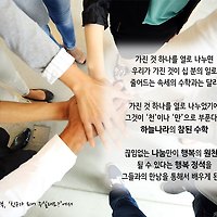 꿈ㆍ비전 - 명언100 이 세상에서 절대 용납할 수 없는 것이 있는데, 그것은 평범함이다. 우리가 자기 계발을 하지 않아 평범해진다면, 그것은 죄악이다. 사명으로 움직이는 사람들은 평범해질 틈이 없다. 이 세상에서절대 용납할 수 없는 것이 있는데,그것은 평범함이다. 우리가자기 계발을 하지 않아 평범해진다면,그것은 죄악이다. 사명으로 움직이는 사람들은평범해질 틈이 없다. - 마사 그레이엄 (세계적 무용가) 꿈ㆍ비전 - 명언 2018. 7. 11. 더보기 ›› 인생은 평화와 행복만으로는 지속될 수 없다. 고통과 노력이 필요하다. 고통을 두려워하지 말고 슬퍼하지 말라. 참고 인내하면서 노력해 가는 것이 인생이다. 희망은 언제나 고통의 언덕 너머.. 인생은 평화와 행복만으로는 지속될 수 없다.고통과 노력이 필요하다.고통을 두려워하지 말고 슬퍼하지 말라.참고 인내하면서 노력해 가는 것이 인생이다.희망은 언제나 고통의 언덕 너머에서 기다린다. - 맨스필드 꿈ㆍ비전 - 명언 2018. 5. 14. 더보기 ›› 힘이 닿는 데까지 최대한 남을 도와주었다고 느끼는 사람은 실로 행복한 사람이다. 덕은 외롭지 않다. 덕을 베풀면 반드시 결과가 있다. 받는 것 보다 주는 것이행복하다는 것은 곧 진리이다. 힘이 닿는 데까지 최대한 남을 도와주었다고느끼는 사람은 실로 행복한 사람이다. 덕은 외롭지 않다.덕을 베풀면 반드시 결과가 있다. 친절을 베푸는 행위는절대로 헛되지 않는 법이다. - 앤드류 카네기 꿈ㆍ비전 - 명언 2018. 4. 11. 더보기 ›› 인생에서 해온 모든 일들을 되돌아볼 때, 당신은 다른 사람들보다 잘하고 그들을 이긴 순간보다 그들의 삶에 기쁨을 준 순간을 회상하며 더 큰 만족을 얻게 될 것이다. 인생의 목적은 이기는 것이 아니다.인생의 목적은 성장하고 나누는 것이다. 인생에서 해온 모든 일들을 되돌아볼 때,당신은 다른 사람들보다 잘하고그들을 이긴 순간보다그들의 삶에 기쁨을 준 순간을 회상하며더 큰 만족을 얻게 될 것이다. - 해롤드 쿠시너(Harold Kushner) 꿈ㆍ비전 - 명언 2018. 3. 26. 더보기 ›› 다른 사람의 능력과 비교해서 뛰어난 능력이 아니라 자기안에 이미 깃들어 있는 능력 가운데 가장 뛰어난 능력이 바로 천재성이다. 이 천재성이야말로 앞으로 자신이 할일을 찾아내는데 중.. 우리 모두에게는 각자의 천재성이 있다.천재라고 하면 자신과는 상관없는이야기라고 말하는 사람이 많다.내가 말하는 천재성은 일반적 정의와는 다르다. 다른 사람의 능력과 비교해서뛰어난 능력이 아니라자기 안에 이미 깃들어 있는 능력 가운데가장 뛰어난 능력이 바로 천재성이다. 그리고 이 천재성이야말로앞으로 자신이 할 일을 찾아내는 데중요한 열쇠가 된다. - ‘꿈 PD 채인영입니다’에서 꿈ㆍ비전 - 명언 2018. 3. 22. 더보기 ›› 가진 것 하나를 열로 나누었기에 그것이 천이나 만으로 부푼다는 하늘나라의 참된 수학 가진 것 하나를 열로 나누면우리가 가진 것이 십 분의 일로 줄어드는속세의 수학과는 달리가진 것 하나를 열로 나누었기에그것이 ‘천’이나 ‘만’으로 부푼다는하늘나라의 참된 수학,끊임없는 나눔만이 행복의 원천이 될 수 있다는행복 정석을 그들과의 만남을 통해서 배우게 된다. - 이태석 신부, ‘친구가 되어 주실래요?’에서 꿈ㆍ비전 - 명언 2017. 12. 30. 더보기 ›› 자신의 계획을 애초에 계획했던 것보다 10배는 크게 만드십시오. 앞으로 25년 후면 그것을 왜 50배 크게 하지 않았을까 하고 의아해 할 것입니다. 자신의 계획을 가능한 한환상적으로 세우세요. 앞으로 25년 후면 그것이평범하게 보일 것이기 때문입니다. 자신의 계획을 애초에계획했던 것보다10배는 크게 만드십시오. 앞으로 25년 후면 그것을 왜50배 크게 하지 않았을까 하고의아해 할 것입니다. - 헨리 카티스 꿈ㆍ비전 - 명언 2017. 12. 28. 더보기 ›› 동산에 오르는 자는 마을을 얻고, 태산에 오르는 자가 천하를 얻으며, 내일을 생각하는 자는 매일 급급하고, 십년 뒤를 계책하는 자가 마침내 성공을 얻는다. 동산에 오르는 자는 마을을 얻고,태산에 오르는 자가 천하를 얻으며, 내일을 생각하는 자는 매일 급급하고,십년 뒤를 계책하는 자가 마침내 성공을 얻는다. - ‘리더의 아침을 여는 책’에서 인용 꿈ㆍ비전 - 명언 2017. 12. 14. 더보기 ›› 사람이 그 사회에서 얼마나 가치 있는가는 그 사람의 감정과 사고와 행동이 타인에게 어느 정도 도움이 되는가에 달려있다. 한 인간의 가치는그가 무엇을 받을 수 있느냐가 아니라무엇을 줄 수 있느냐로 판단된다. 사람이 그 사회에서얼마나 가치 있는가는그 사람의 감정과 사고와 행동이타인에게 어느 정도 도움이 되는가에 달려있다. - 앨버트 아인슈타인 꿈ㆍ비전 - 명언 2017. 12. 12. 더보기 ›› 성공하는 사람은 성공하지 못하는 사람들이 하기 싫어하는 일을 하는 습관을 가지고 있다. 물론 그들도 그런 일을 하고 싶지 않기는 마찬가지이다. 그러나 그들은 목적의식이라는 힘으로 그.. 성공하는 사람은성공하지 못하는 사람들이하기 싫어하는 일을 하는 습관을 가지고 있다. 물론 그들도그런 일을 하고 싶지 않기는 마찬가지이다.그러나 그들은 목적의식이라는 힘으로그것을 극복하고,