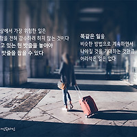 실천ㆍ습관 - 명언89 자연계에 안전한 상태란 존재하지 않는다. 눈앞에 닥친 위험을 피했다고 해서 영원히 안전한 것은 아니다. 모험을 거부하는 것은 곧 삶을 거부하는 것이다. 자연계에 안전한 상태란 존재하지 않는다. 눈앞에 닥친 위험을 피했다고 해서영원히 안전한 것은 아니다. 모험을 거부하는 것은곧 삶을 거부하는 것이다. - 헬렌 켈러 실천ㆍ습관 - 명언 2019. 6. 26. 더보기 ›› 위험 없이 이익을 얻는 것, 위험 없이 경험하는 것, 일하지 않고 보상받는 것은 우리가 태어나지 않고 사는 것만큼이나 불가능한 것이다. 위험 없이 이익을 얻는 것, 위험 없이 경험하는 것 일하지 않고 보상받는 것은우리가 태어나지 않고 사는 것만큼이나불가능한 것이다. - A. P. 구티 실천ㆍ습관 - 명언 2019. 6. 15. 더보기 ›› 실패, 또 실패, 반복되는 실패는 성공으로 가는 길의 이정표다. 당신이 실패하지 않을 수 있는 유일한 길은 당신이 아무런 시도도 하지 않는 것이다. 사람들은 실패하면서 성공을 향해 나간다. 처음부터 잘되는 일은 아무것도 없다.실패, 또 실패, 반복되는 실패는성공으로 가는 길의 이정표다. 당신이 실패하지 않을 수 있는 유일한 길은당신이 아무런 시도도 하지 않는 것이다. 사람들은 실패하면서 성공을 향해 나간다. - 찰스 F . 키틀링 실천ㆍ습관 - 명언 2019. 5. 26. 더보기 ›› 세상에서 가장 위험한 일은 위험을 전혀 감수하려 하지 않는 것이다. 잡고 있는 헌 밧줄을 놓아야 새 밧줄을 잡을 수 있다. 세상에서 가장 위험한 일은위험을 전혀 감수하려 하지 않는 것이다. 잡고 있는 헌 밧줄을 놓아야새 밧줄을 잡을 수 있다. 똑같은 일을비슷한 방법으로 계속하면서나아질 것을 기대하는 것만큼어리석은 일은 없다. - 아인슈타인 실천ㆍ습관 - 명언 2019. 5. 24. 더보기 ›› 모든 성공한 사람들을 묶어주는 공통점은 결정과 실행사이의 간격을 아주 좁게 유지하는 능력이다. 미룬 일은 포기해 버린 일이나 마찬가지다. 좋은 계획에서 좋은 행동으로 가는 길처럼먼 것은 아무것도 없다. 모든 성공한 사람들을 묶어주는 공통점은결정과 실행사이의 간격을아주 좁게 유지하는 능력이다. 미룬 일은 포기해 버린 일이나 마찬가지다. - 피터 드러커 실천ㆍ습관 - 명언 2019. 4. 26. 더보기 ›› 모두가 세상을 변화시키려고 생각하지만, 정작 스스로 변하겠다고 생각하는 사람은 없다. 모두가 세상을변화시키려고 생각하지만,정작 스스로 변하겠다고 생각하는 사람은없다. - 톨스토이 실천ㆍ습관 - 명언 2019. 1. 31. 더보기 ›› 모험적이고 흥분되는 것에 더 많은 안정이 있다. 움직이는 것에 생명이 있으며, 변화하는 것에 힘이 있다. 익숙하고 안정된 것처럼 보이는 것을버리는 일이나새로운 것을 포함하는 일은많은 용기를 필요로 한다. 그러나 더 이상 의미가 있는 것 중에진정한 안정이란 없다. 모험적이고 흥분되는 것에더 많은 안정이 있다. 움직이는 것에 생명이 있으며,변화하는 것에 힘이 있다. - 알렌 코헨 실천ㆍ습관 - 명언 2018. 11. 4. 더보기 ›› 우리가 느끼는 두려움은 대부분 머릿속에서 만들어낸 창작품이다. 그걸 깨닫지 못하는 것뿐이다. 우리가 느끼는 두려움은대부분 머릿속에서 만들어낸 창작품이다.그걸 깨닫지 못하는 것뿐이다. 걸음마를 배우는 아기를 보자.아기가 단번에 성공할 거라 믿는가?다시 서 보고,그러다 또 쿵하고 넘어지곤 한다.아기는 평균 2천 번을 넘어져야비로소 걷는 법을 배운다. - 로랑 구넬 실천ㆍ습관 - 명언 2018. 10. 23. 더보기 ›› 수많은 일이 실제 불가능하기 보다는 불가능하다고 생각하는 소극적인 사고방식 때문에 불가능해진다. 뭐든지 할 수 있다는 자신감은 성공의 원천이다. 만일 불가능하다는 사실을 미리 알았더라면연구에 착수하기도 전에자신감을 상실해 버렸을 것이다. 수많은 일이 실제 불가능하기 보다는불가능하다고 생각하는소극적인 사고방식 때문에 불가능해진다. 뭐든지 할 수 있다는 자신감은성공의 원천이다. 우주의 중심에‘출입금지 푯말’ 따위는 없다. - 오마에 겐이치 실천ㆍ습관 - 명언 2018. 10. 22. 더보기 ›› 누구나 편안하다고 느끼는 순간 두뇌는 활동을 멈추게 된다. 창의성을 폭발적으로 끌어올리고 진정 성공하기를 원한다면 자신의 따뜻한 보금자리를 떠나야만 한다. 누구나 편안하다고 느끼는 순간 두뇌는 활동을 멈추게 된다. 어떤 사람이 창의성을 폭발적으로 끌어올리고 진정 성공하기를 원한다면 자신의 따뜻한 보금자리를 떠나야만 한다. 한 곳에 머무르지 말고 항상 정신적, 육체적으로 방랑하라. 편안함을 느끼며 안주해서는 안 된다. - 에란 카츠, ‘천재가 된 제롬’에서 실천ㆍ습관 - 명언 2018. 8. 1. 더보기 ›› 이전 1 2 3 4 ··· 9 다음